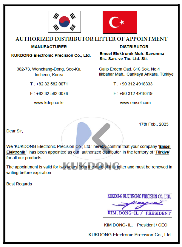 Emsel 2018 yılında bu yana Uzak Doğunun devlerinden Kukdong Electronics Precision Co., Ltd., Güney Kore, firmasının yetkili Türkiye Distrübütörü olarak faaliyet göstermektedir.